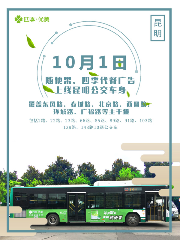 秋日的昆明已然美得不可方物,四季優(yōu)美公交車體廣告的進(jìn)駐,更讓這一抹秋色多了一些靈動,平添幾許綠意。