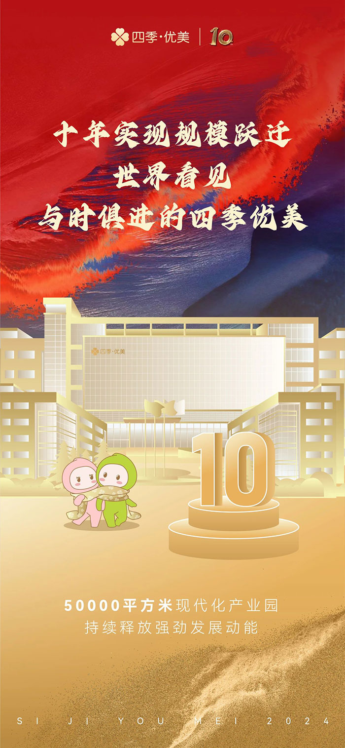 此刻,是2024年12月24日,既是舊歲尾聲,也是四季優(yōu)美誕生十周年的紀(jì)念日。十年前的今天,一些恣意生長的夢想,一些按捺不住的沖動(dòng),一些無處抑制的不甘和倔強(qiáng),聚成一團(tuán)熊熊的火焰噴薄而出——而這,也變成了后來這一串創(chuàng)業(yè)故事的發(fā)軔。在歷史的長河中,十年或許只是須臾一瞬,但對(duì)于四季優(yōu)美而言,十年卻是夢想與現(xiàn)實(shí)交織的見證,是從無到有、從弱到強(qiáng)的輝煌蛻變,是一段波瀾壯闊的豪邁征途。