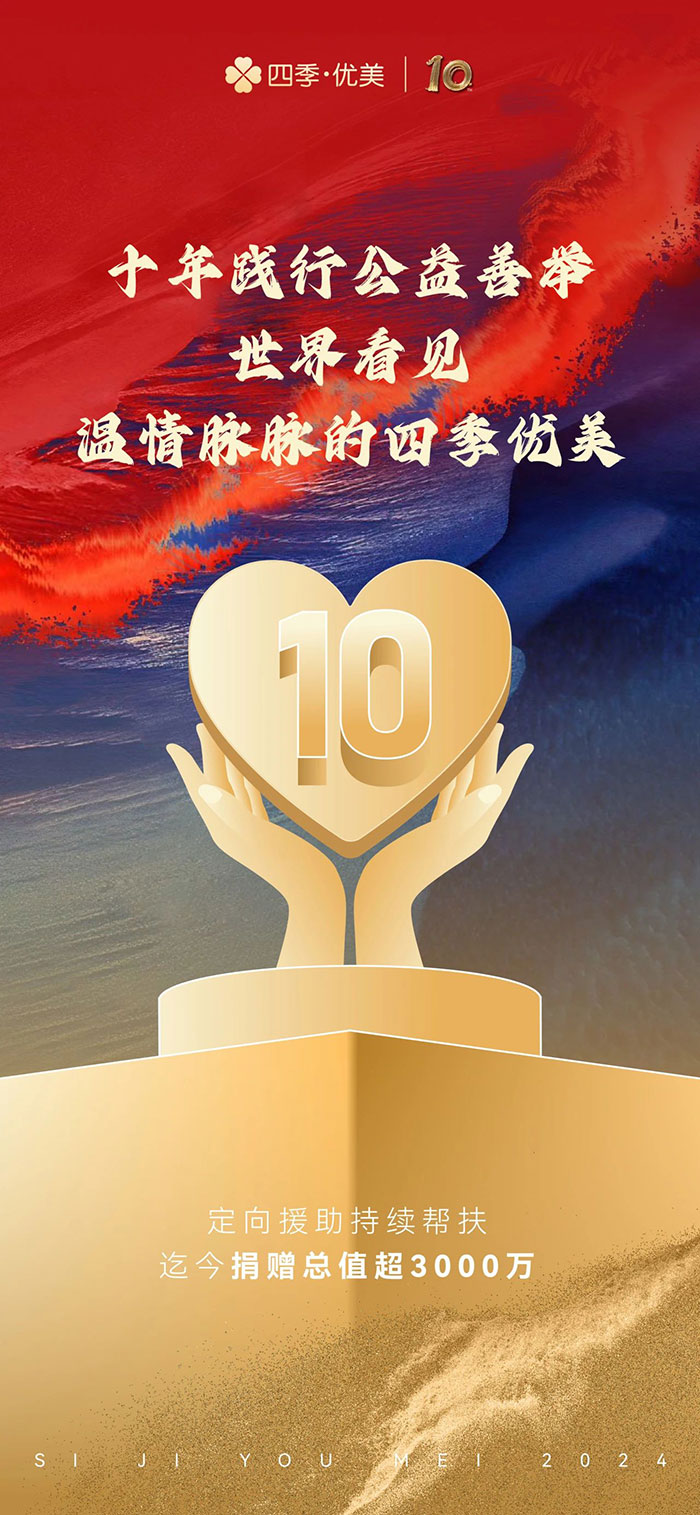 一幀幀記憶連綴,便成了歲月沉淀的況味:十年的貼地飛行,盡管無法避免摩擦感,但向前、向美、向善始終是我們的主旋律。這一刻,是作別,也是啟程,伴隨著深情的回眸,耳畔依然是篤定的鏗鏘足音:站在新的起跑點(diǎn)上,四季優(yōu)美將繼續(xù)攜信念行走山海,以奮斗回應(yīng)時(shí)代。歷經(jīng)歲月打磨的四季優(yōu)美將以更自信、更青春、更務(wù)實(shí)的姿態(tài),與世界同頻共進(jìn)。